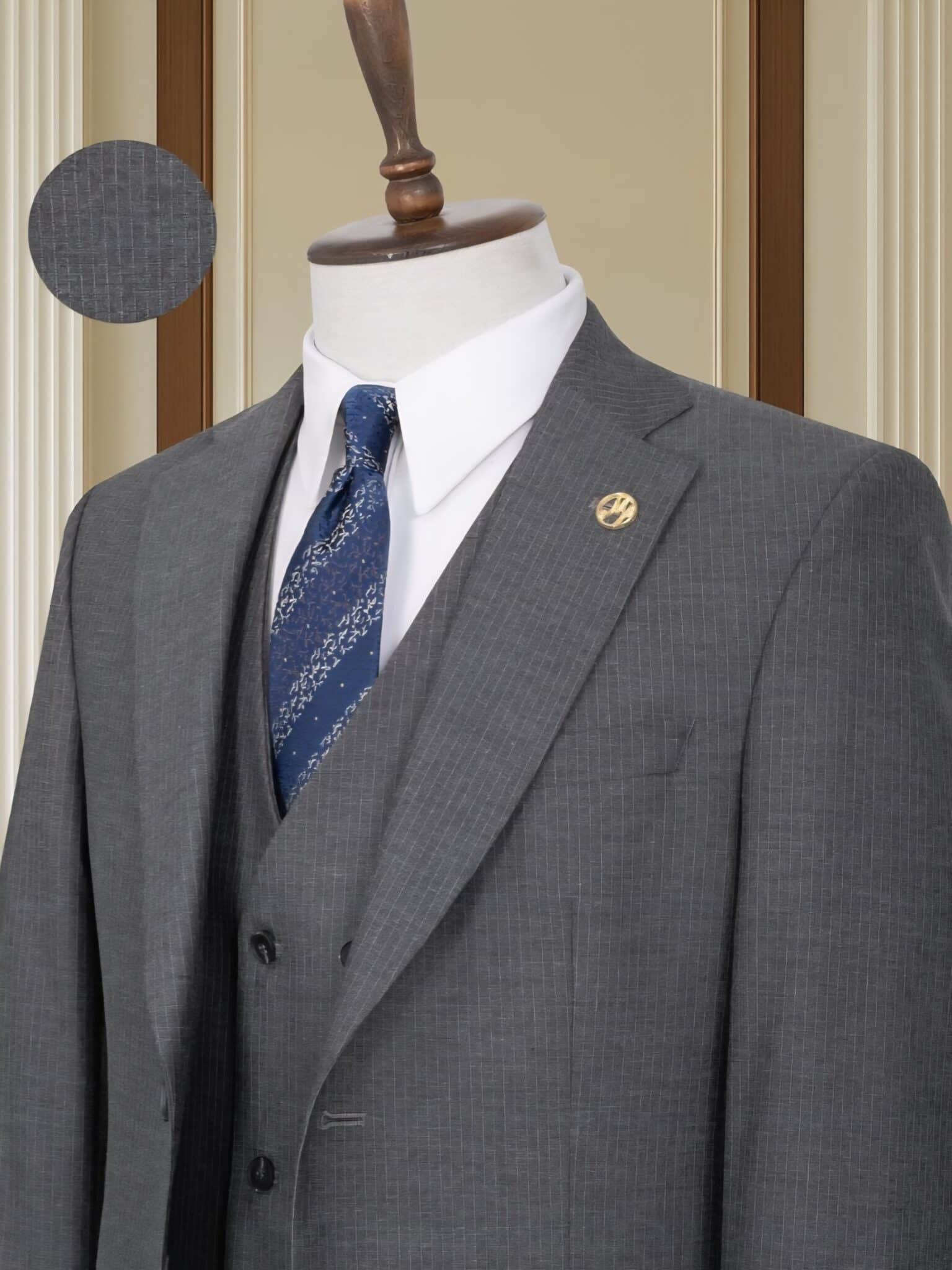 3. The Fabric: If you look closely at the fabric (Code: 968), you can see it has a nice texture and the stripes are very neat. This means the suit will hang nicely on your body and look smooth all evening long.